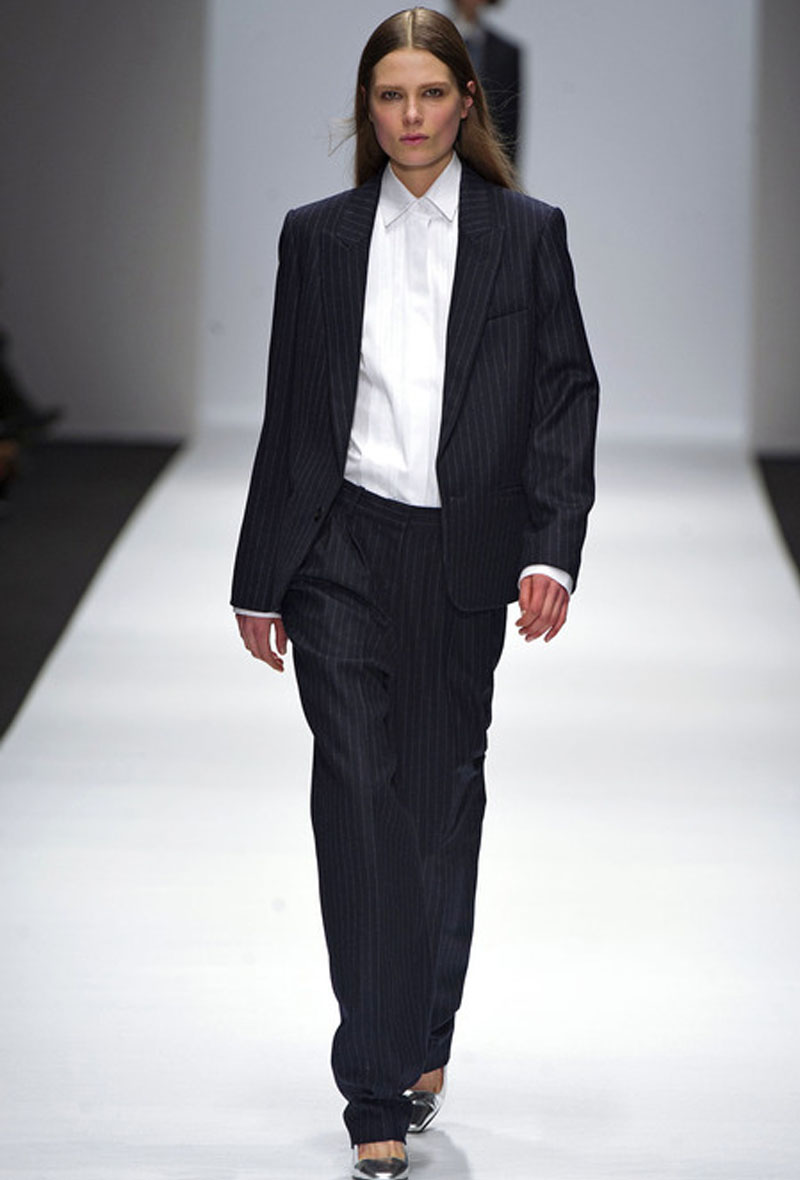 If anything, Bruno, like many other designer's this season, has further inflated the dichotomy that will be born on the pavements of next Fall - cocoon oneself in flowing pinstripe suits or, bare those legs of yours à la ADR.